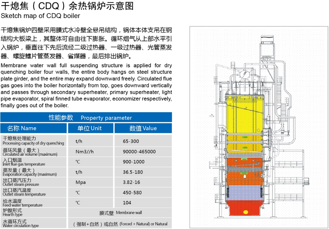 公司干熄焦余熱鍋爐產(chǎn)品在吸收國外先進技術(shù)和經(jīng)驗基礎(chǔ)上,結(jié)合我國具體實際,在設(shè)計、工藝、材料、制造及檢驗等環(huán)節(jié)嚴格控制,對鍋爐中最薄弱的環(huán)節(jié)采取特殊防護措施,以最大限度提高鍋爐熱效率和使用壽命;公司研制的高溫高壓干熄焦余熱鍋爐被列入國家863計劃、國家火炬計劃和江蘇省科技成果轉(zhuǎn)化專項資金扶持,項目研究成果榮獲國家科技進步二等獎、中國冶金科學(xué)技術(shù)獎一等獎;同時高溫高壓干熄焦余熱鍋爐被列入國家重點新產(chǎn)品和省高新技術(shù)產(chǎn)品,突破了余熱鍋爐防腐、密封、防膨脹等多項專利技術(shù),同時參與了YB/T 4255-2012《干熄焦節(jié)能技術(shù)規(guī)范》行業(yè)技術(shù)標(biāo)準(zhǔn)的制定;通過技術(shù)專利化、專利標(biāo)準(zhǔn)化戰(zhàn)略,構(gòu)筑產(chǎn)品市場核心競爭力。