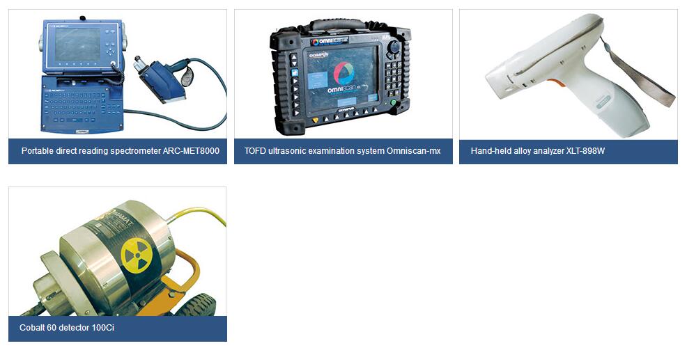 The company now has testing, testing equipment 83 (sets), of which 4MeV linear accelerator (250mm penetration of steel), Co60 isotope testing machine (250mm penetration of steel), NDT-1500J electronic low temperature drop test machine, imported portable, desktop spectrometer, quantitative analysis can be carbon steel, alloy steel, stainless steel components, high temperature electronic testing machine, low-temperature impact machine, infrared carbon and sulfur analyzer, lasers and other electronic total station.