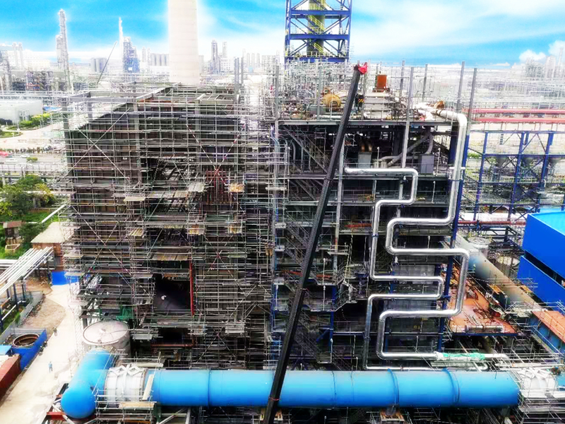 我公司海陸重工【股票代碼002255】作為國內余熱鍋爐行業的知名企業,為該項目配套了自主專利技術的催化裂化裝置的大型焚燒式CO余熱鍋爐。該設備的工作原理是用催化裝置的高溫煙氣能量產生蒸汽,利用過熱裝置內油漿蒸汽發生器、外取熱器產生飽和蒸汽。用戶再對飽和蒸汽進行二次利用,可最大程度的實現降低能耗,節能環保,降本節支的總體目標。同時該設備具有爐膛絕熱、自然循環、內部微正壓,全焊透、模塊化,室外布置維修便利與脫硝溫度可調等特點。